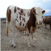 西门塔尔牛原产于瑞士阿尔卑斯山区,并不是纯种肉用牛,而是乳肉兼用品种。但由于西门塔尔牛产乳量高,产肉性能也并不比专门化肉牛品种差,役用性能也很好,是乳、肉、役兼用的大型品种。而且此品种在在黑龙江生产建设兵团成功饲养。从1990年山东省畜牧局牛羊养殖基 地引进该品种。此品种被畜牧界称为全能牛。我国从国外引进肉牛品种始于20世纪初,但大部分都是新中国成立后才引进的。西门塔尔牛在引进我国后,对我国各详细地的黄牛改良效果非常明显,杂交一代的生产性能一般都能提高30%以上,因此很受欢迎。特点:体格大、生长快、肌肉多、脂肪少:西门塔尔牛公牛体高可达150-160厘米,母牛可达135-142厘米。腿部肌肉发达,体驱呈圆筒状、脂肪少。早期生长速度快,并以产肉性能高,胴体瘦肉多而出名.