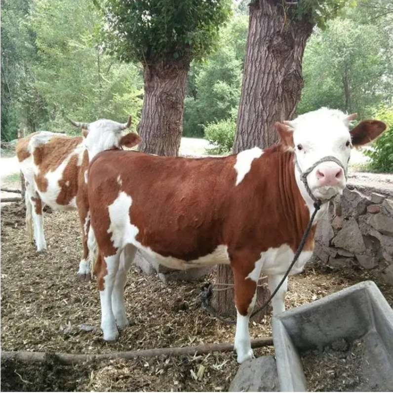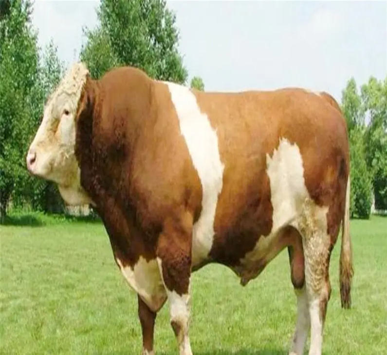 在杂交利用或改良地方品种时的父本。具有典型的肉用性能:不同品种的牛,在体格、体型方面是不同的,这使牛的生长率、产肉量和胴体组成方面表现出较大差异。西门塔尔牛在育肥期平均日增重1.5-2公斤,12月龄的牛可达500-550公斤。而地方品种的牛日增重仅有0.7-1公斤,可见差距之大。肉的营养价值高:肉牛蛋白质含量高达8%-9.5%,而且人食用后的消化率高达90%以上。牛肉脂肪能提供大量的热能。牛肉的矿物质含量是猪肉的2倍以上。所以牛肉长期以来倍受消费者的青睐。肉品等级高:西门塔尔牛的牛肉等级明显高于普通牛肉。肉色鲜红、纹理细致、富有弹性、大理石花纹适中、脂肪色泽为白色或带淡黄色、脂肪质地有较高的硬度、胴体体表脂肪覆盖率100%。普通的牛肉很难达到这个标准。